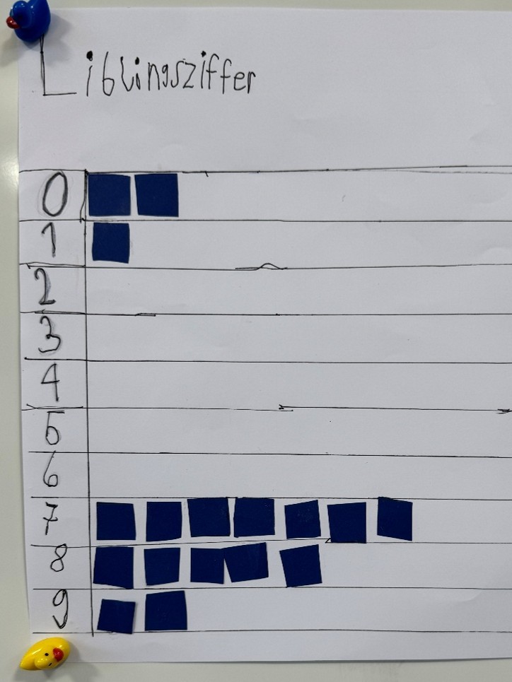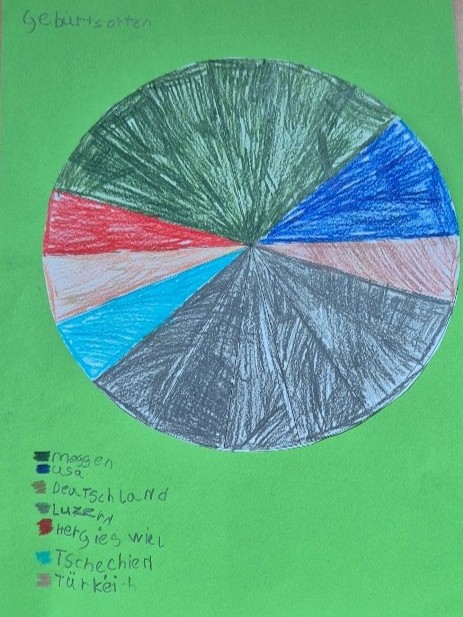 Die 2. Klassen haben eine Ausstellung zur eigenen Klasse vorbereitet. Dazu haben sie Daten erhoben, ausgewertet und dargestellt.