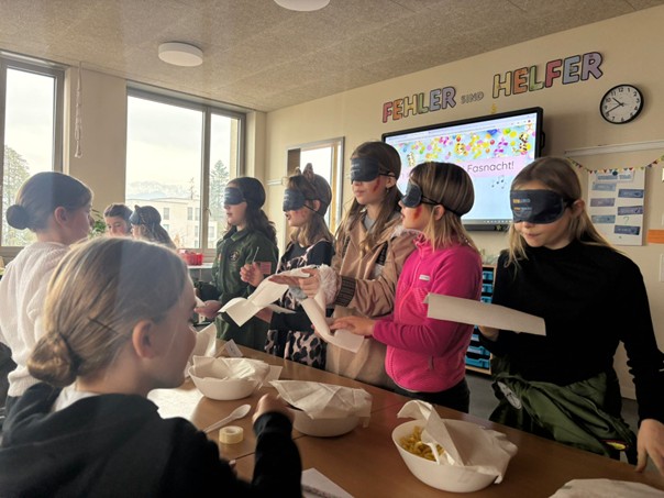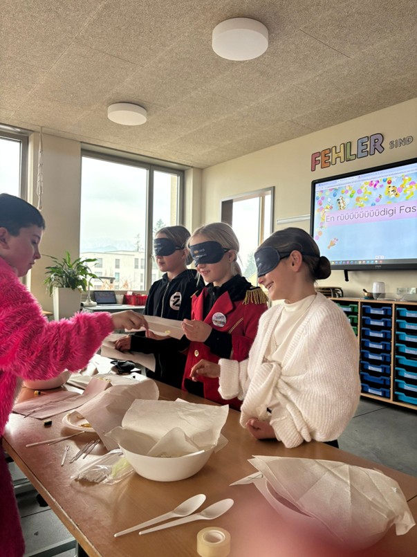bei konnten die Kinder verschiedene Ateliers besuchen und nach Lust und Laune auswählen, woran sie teilnehmen wollten. Das vielfältige Angebot reichte vom fastnächtlichen Schminken über eine bunte Kostümshow, einen spannenden Papierflieger-Wettbewerb, Just Dance bis hin zu Blind Tasting und Gesellschaftsspielen. Auch die Bewegung kam nicht zur kurz. Draussen wurde mit viel Freude, Ausdauer und Ehrgeiz Fussball und Basketball gespielt. Besonders schön war, dass sich die Kinder verkleiden durften und mit ihren fantasievollen Kostümen für eine farbenfrohe Stimmung sorgten.