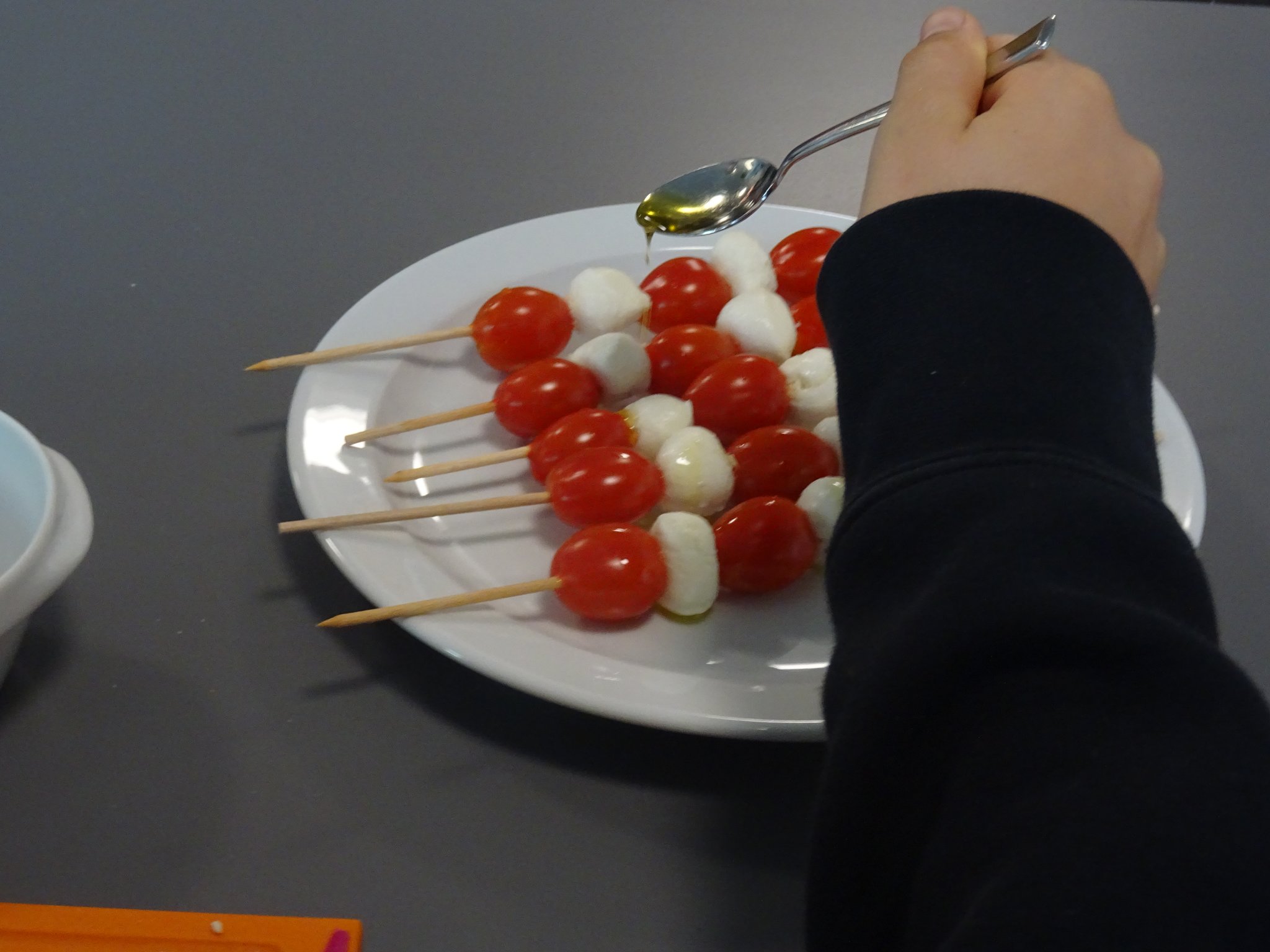 Die Streetfood Gruppe kreiert feine Tomaten-Mozzarellaspiesschen.