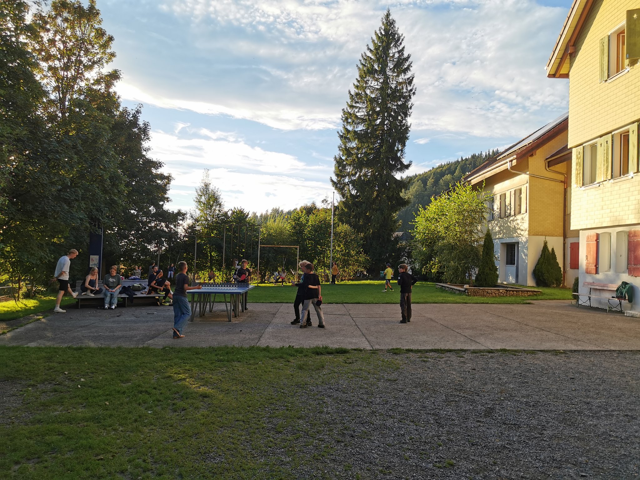 Den zweiten Tag starteten wir mit einem gemütlichen Programm im und rund ums Haus. Es wurde gespielt, gebacken und gemeinsam gelacht. Einige Kinder tobten sich beim Schwingen auf der Wiese aus, während andere lieber im nahegelegenen Bach badeten und die frische Bergluft genossen.