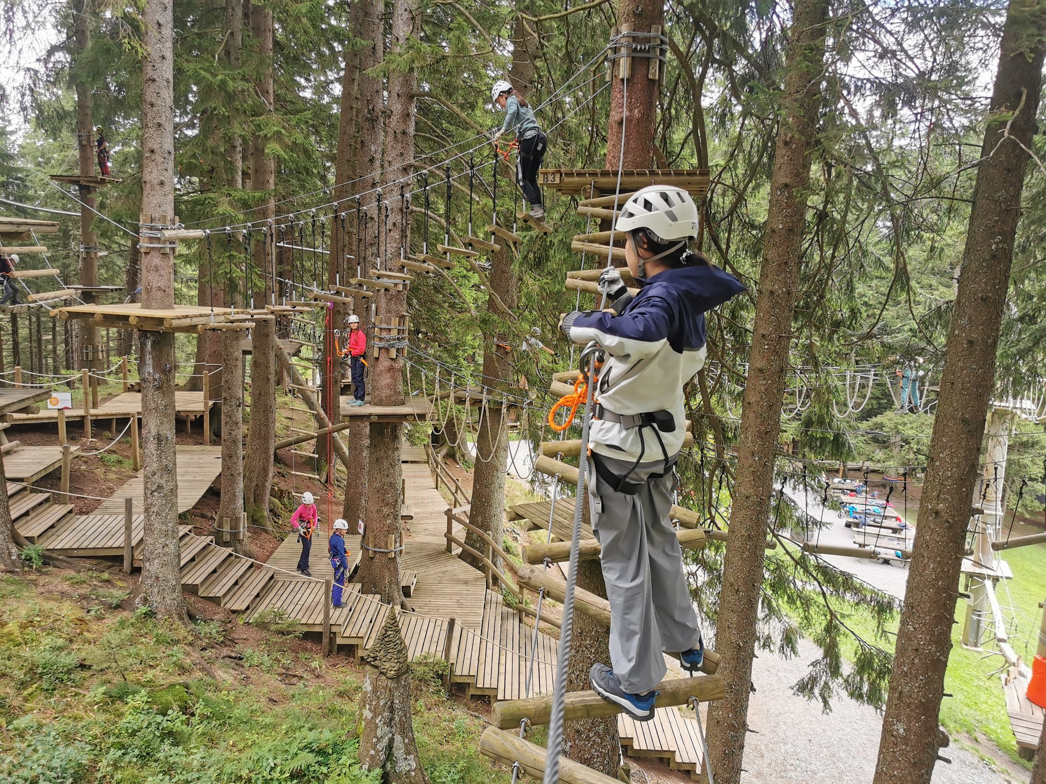 Am Donnerstag marschierten wir von der Jugendalp zur Krienseregg. Dort teilte sich die Gruppe. Eine Gruppe besuchte den Seilpark auf der Fräkmüntegg, wo Mut und Geschick gefragt waren, die andere Gruppe fuhr mit der Gondelbahn hinunter nach Kriens und verbrachte einen gemütlichen Nachmittag im Hallenbad Allmend in Luzern. Beide Gruppen hatten Spass und viel zu erzählen.