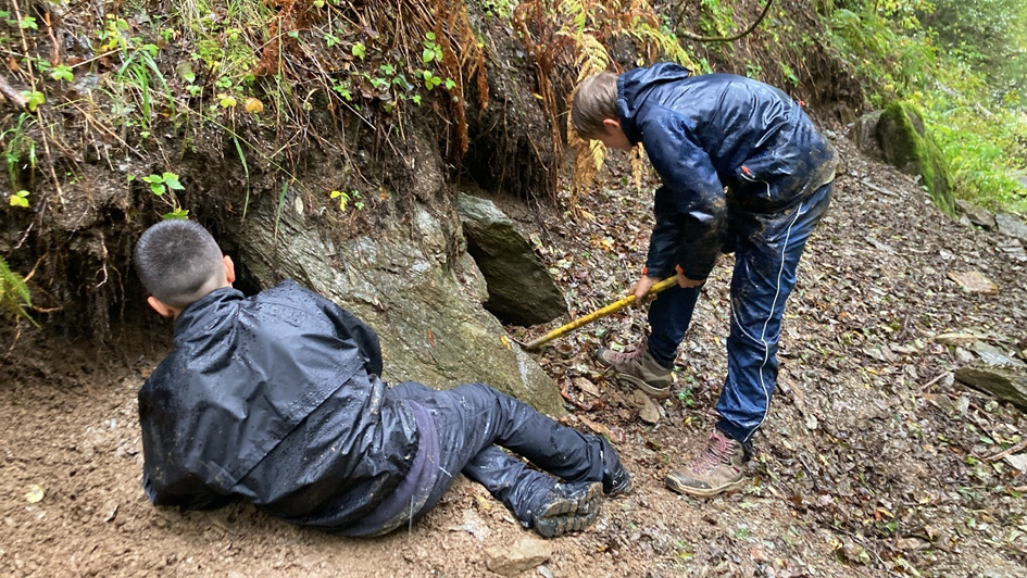 Gesteinskunde deluxe! Wer braucht schon glitzernde Diamanten, wenn man herrlichen Speckstein hat? 🤓 Unsere Drittsekler verwandelten sich in Bildhauer der Champions League. Es wurde gefeilt, geschliffen und gestaubt, dass Michelangelo sich im Grab die Augen rieb (oder vibrierte – je nach Interpretation). Und was für Schätze unsere Geologietruppe nach Hause schleppte – neben durchnässter Kleidung und vor Begeisterung glutroten Backen – war schlichtweg unermesslich! Zumindest für Unterländer, die sonst nur Kieselsteine vom Spielplatz kennen. Da wurden Gesteinsbrocken gehortet wie Goldbarren, jeder Stein liebevoll begutachtet und für "extrem selten" befunden (Spoiler: Granit gibt's in den Bergen reichlich). Aber hey, wenn man mit leuchtenden Augen einen Felsbrocken präsentiert und erklärt, das sei "der schönste Stein ever", dann ist das geologische Expeditionsfieber ausgebrochen! Die Rucksäcke: doppelt so schwer. Die Freude: unbezahlbar. Die Eltern beim Auspacken: möglicherweise leicht überfordert. 🪨✨